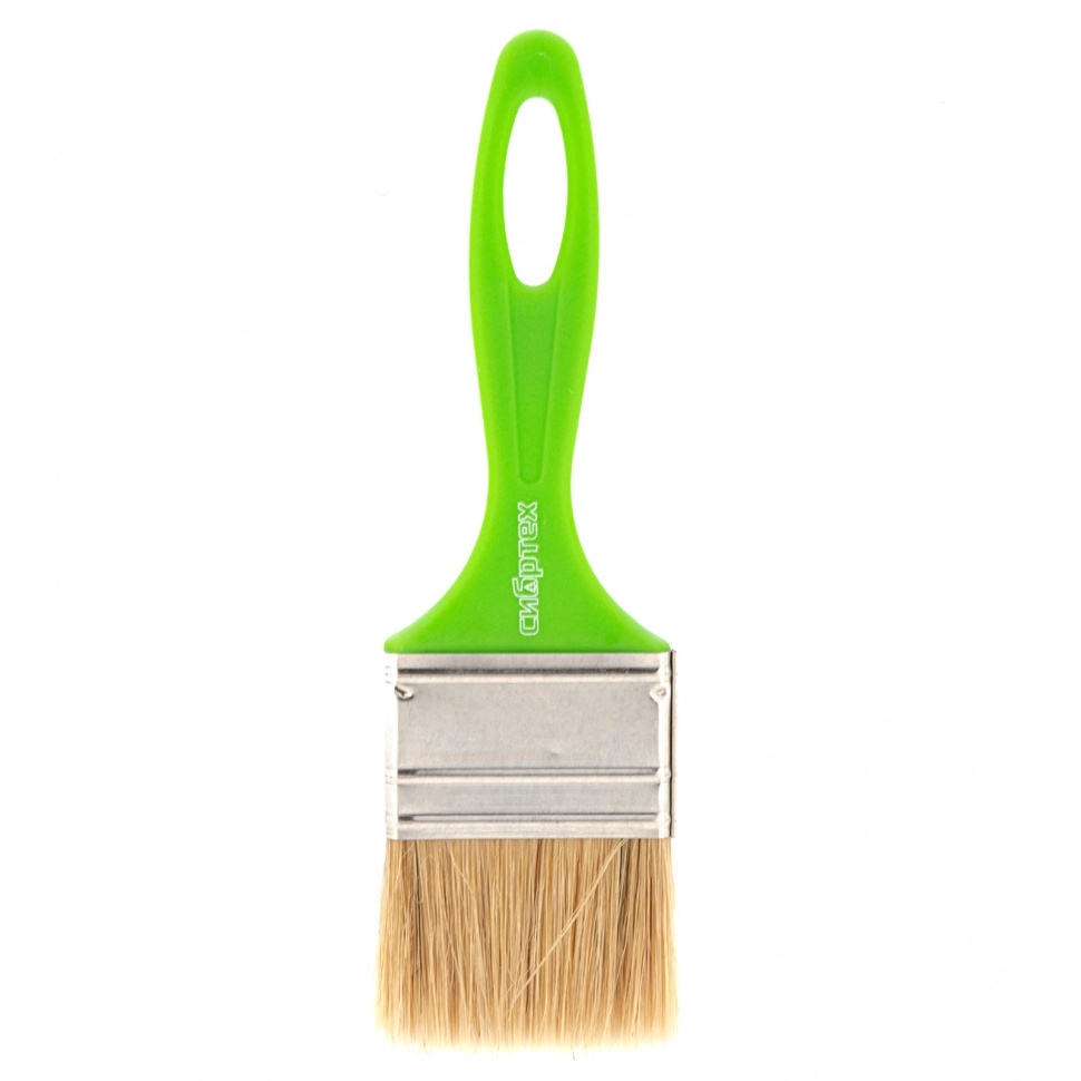 Флейцевая кисть Сибртех «Евро» 83302 шириной 50 мм и толщиной 8 мм, с натуральной щетиной и пластиковой ручкой, предназначена для первичного окрашивания либо создания финишного слоя на небольших или узких участках поверхности. Кисть обладает хорошими краскообменными качествами и подходит для любых видов лакокрасочных материалов (ЛКМ).