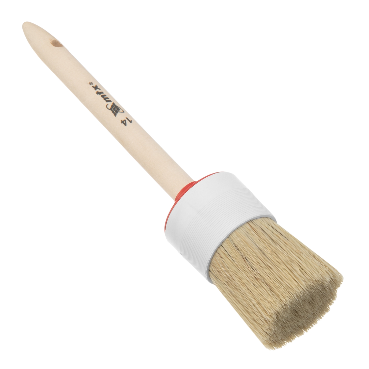 Круглая кисть MTX №14 82084 диаметром 50 мм, с натуральной щетиной и деревянной ручкой, пригодится в быту для окрашивания узких длинных поверхностей. Светлая натуральная свиная щетина с добавлением искусственной обладает высокой износоустойчивостью и может использоваться для нанесения красок с содержанием растворителей, а также масляных красок и лаков.
