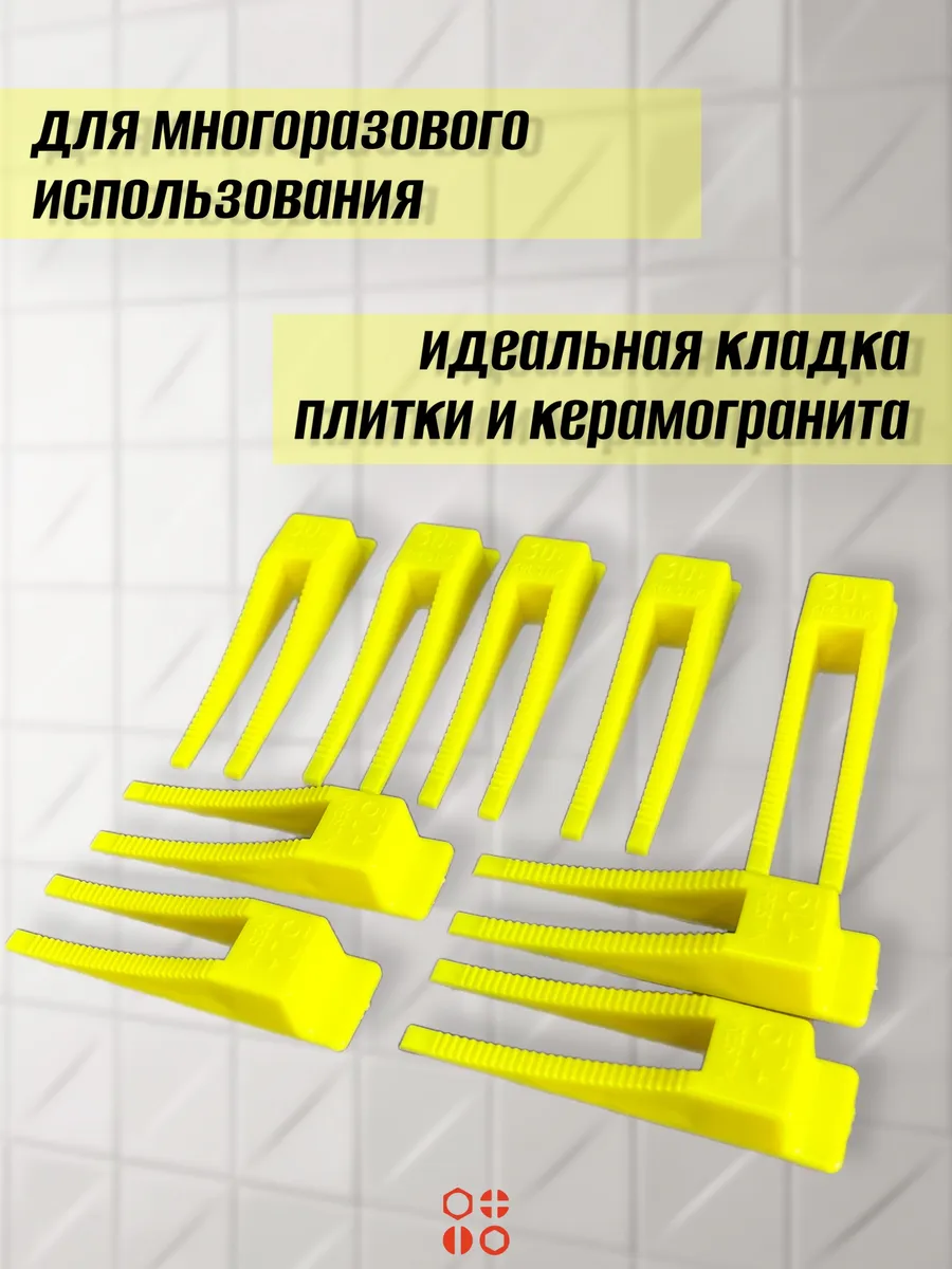 Клин для выравнивания плитки многоразовый жёлтый (200 шт.)