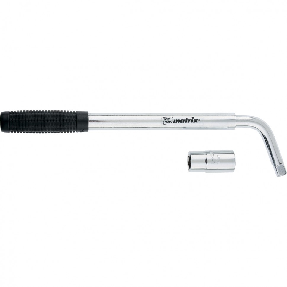 Телескопический Г-образный баллонный ключ Matrix 14237, 1/2 дюйма, 17 х 19 мм, применяется при снятии и установке автомобильных колес. Г-образная форма облегчает работу с крепежами. Двойная съемная торцевая головка рассчитана на болтовые соединения 17 и 19 мм. Ключ предназначен для использования в гараже, на станции шиномонтажа или в автосервисе, а также позволит быстро заменить колесо в дороге.Преимущества Баллонный ключ изготовлен из прочной хромованадиевой стали, поэтому устойчив к нагрузкам и обладает высоким рабочим ресурсом. Телескопическая рукоятка раздвигается на длину от 300 до 450 мм, что позволяет регулировать величину крутящего момента при монтаже и демонтаже крепежей. Хромоникелевое покрытие защищает инструмент от повреждений и коррозии. Торцевая головка надежно крепится на ключ при помощи шарикового фиксатора, поэтому не соскочит во время работы. Ключ имеет присоединительный квадрат 1/2 дюйма, поэтому может использоваться с любыми торцевыми головками с посадочным гнездом соответствующего размера