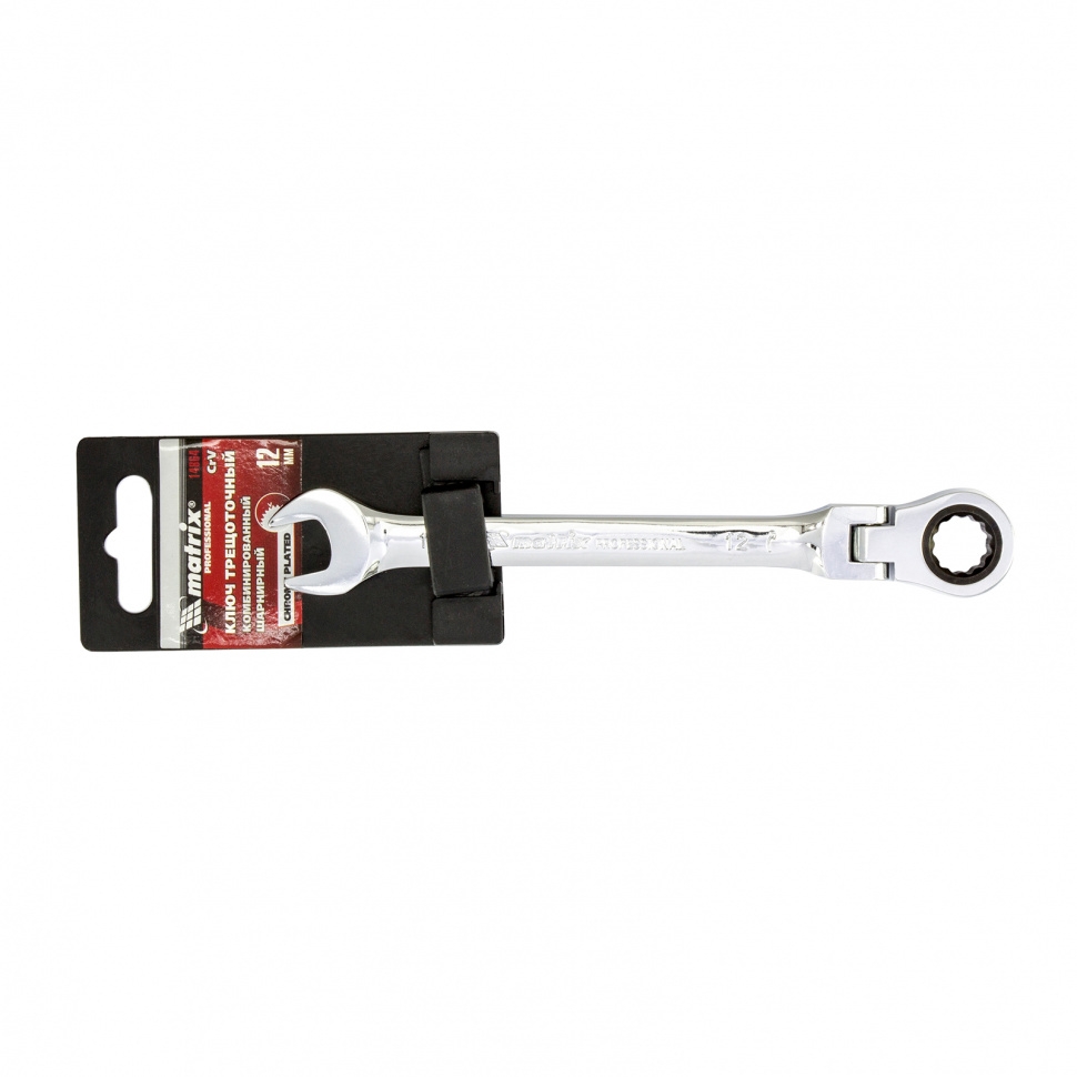 Ключ комбинированный трещоточный шарнирный зеркальный хром 12 мм CrV Matrix