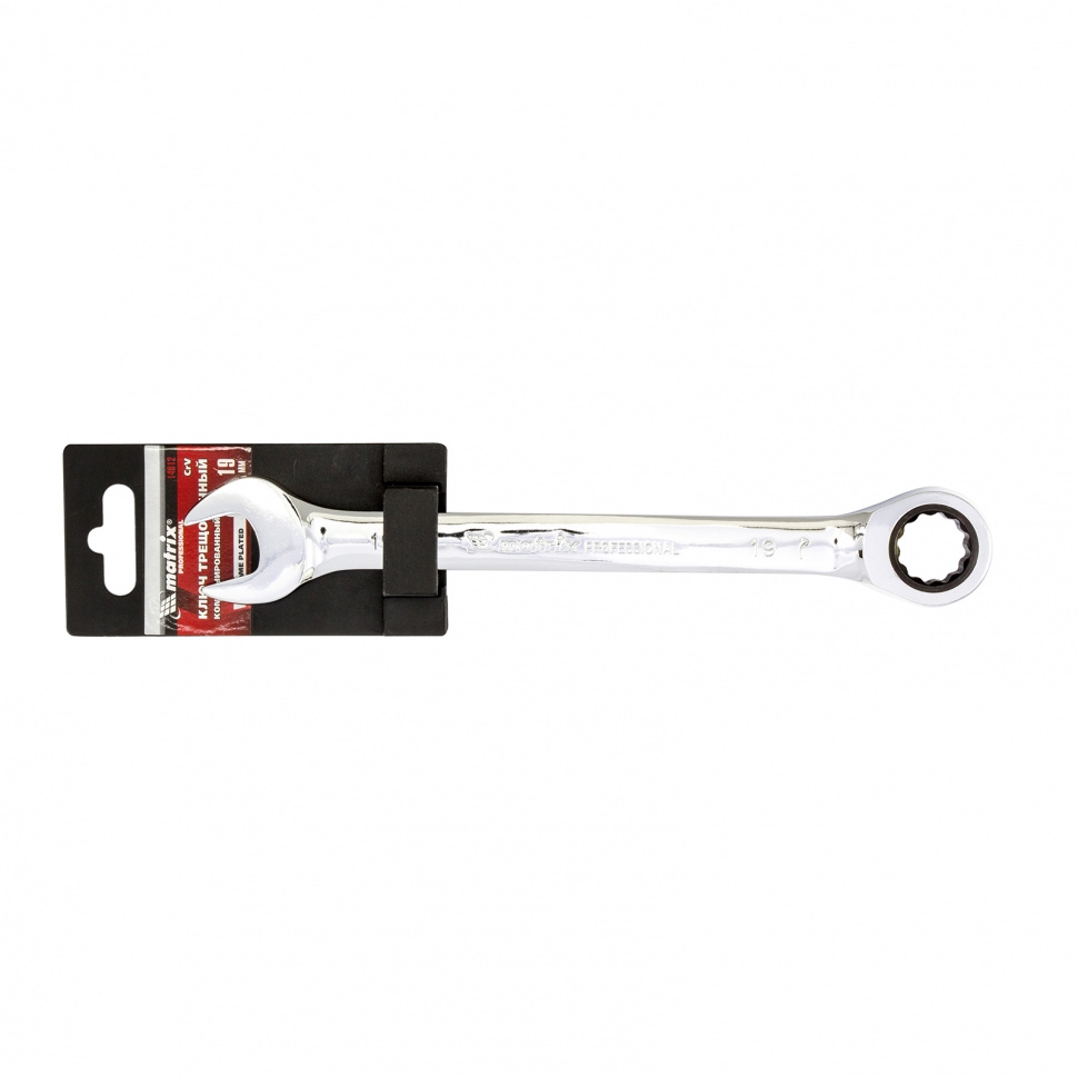 Ключ комбинированный трещоточный зеркальный хром 19 мм CrV Matrix