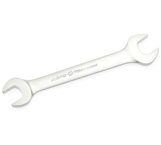 Рожковый ключ Дело Техники 20х22 мм 510220 используется при работе с шестигранными соединениями различных размеров. Он оснащен двумя U-образными головками, расположенными под небольшим углом к оси инструмента. Подобная форма обеспечивает удобство при использовании ключа в труднодоступных местах. Изделие выполнено из стали 31CRV3 твердостью 42-47 HRC, благодаря чему прослужит долгое время.
