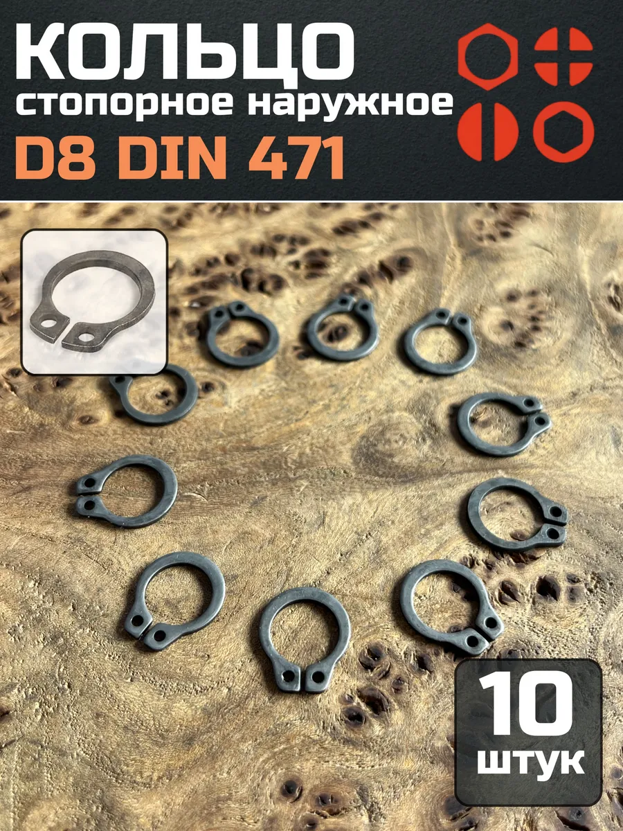 Кольцо наружное стопорное D8 DIN 471, 10 шт.
