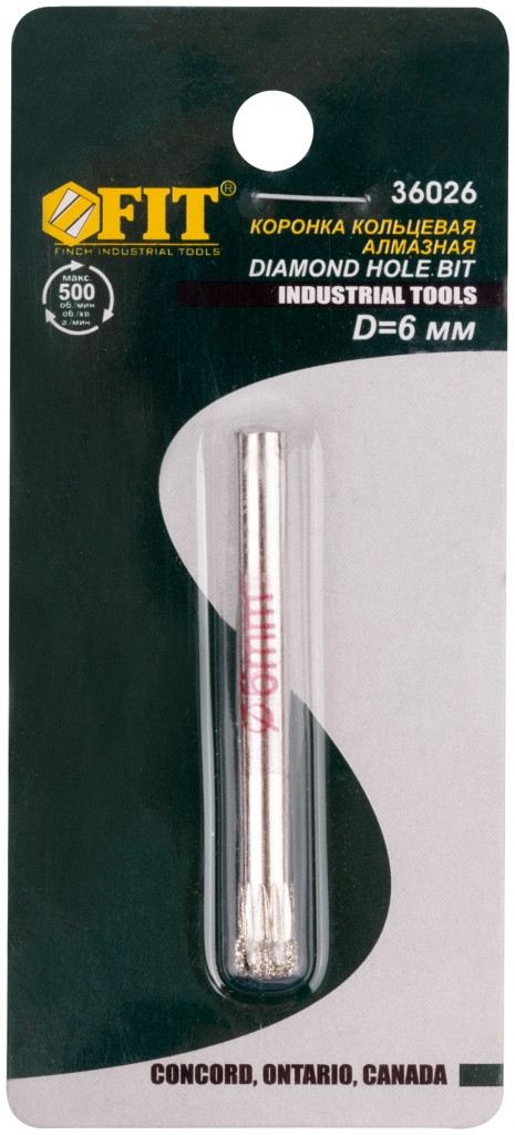 Коронка по кафелю и стеклу, алмазная кольцев 6 мм