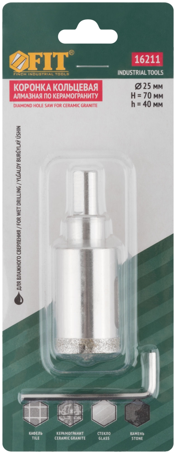| Коронка по керамограниту, камню и кафелю кольцев с центров сверлом 25х67 мм | 16211 | 1 шт. |