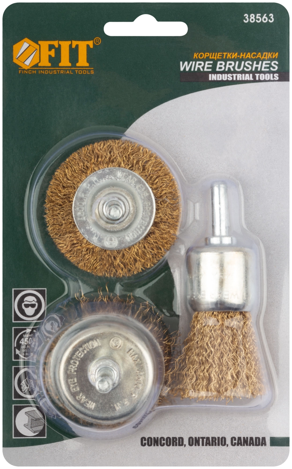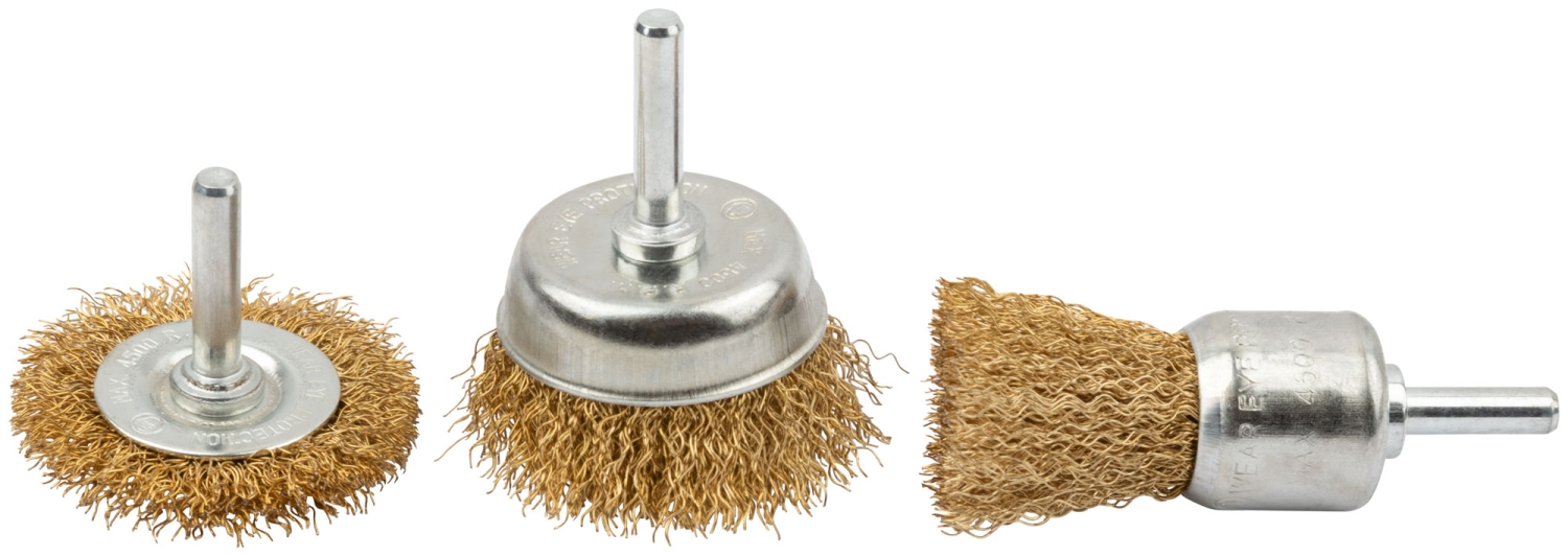 Корщетки со штифтом, набор 3 шт., колесо 50мм/чашка 50мм/венчик 25мм