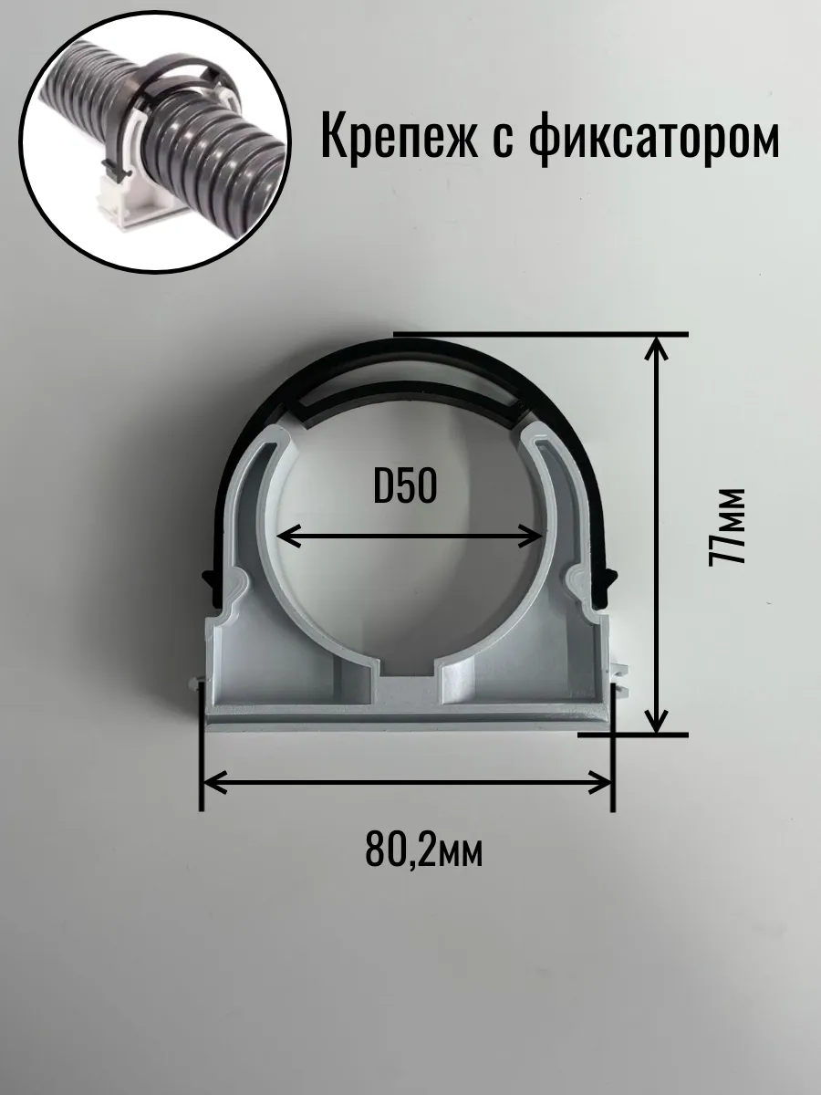Крепеж клипса для трубы гофры с фиксатором d 50 мм