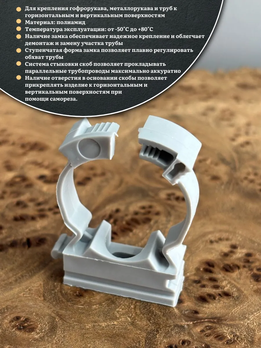 Крепеж клипса для трубы гофры с замком d 25 мм