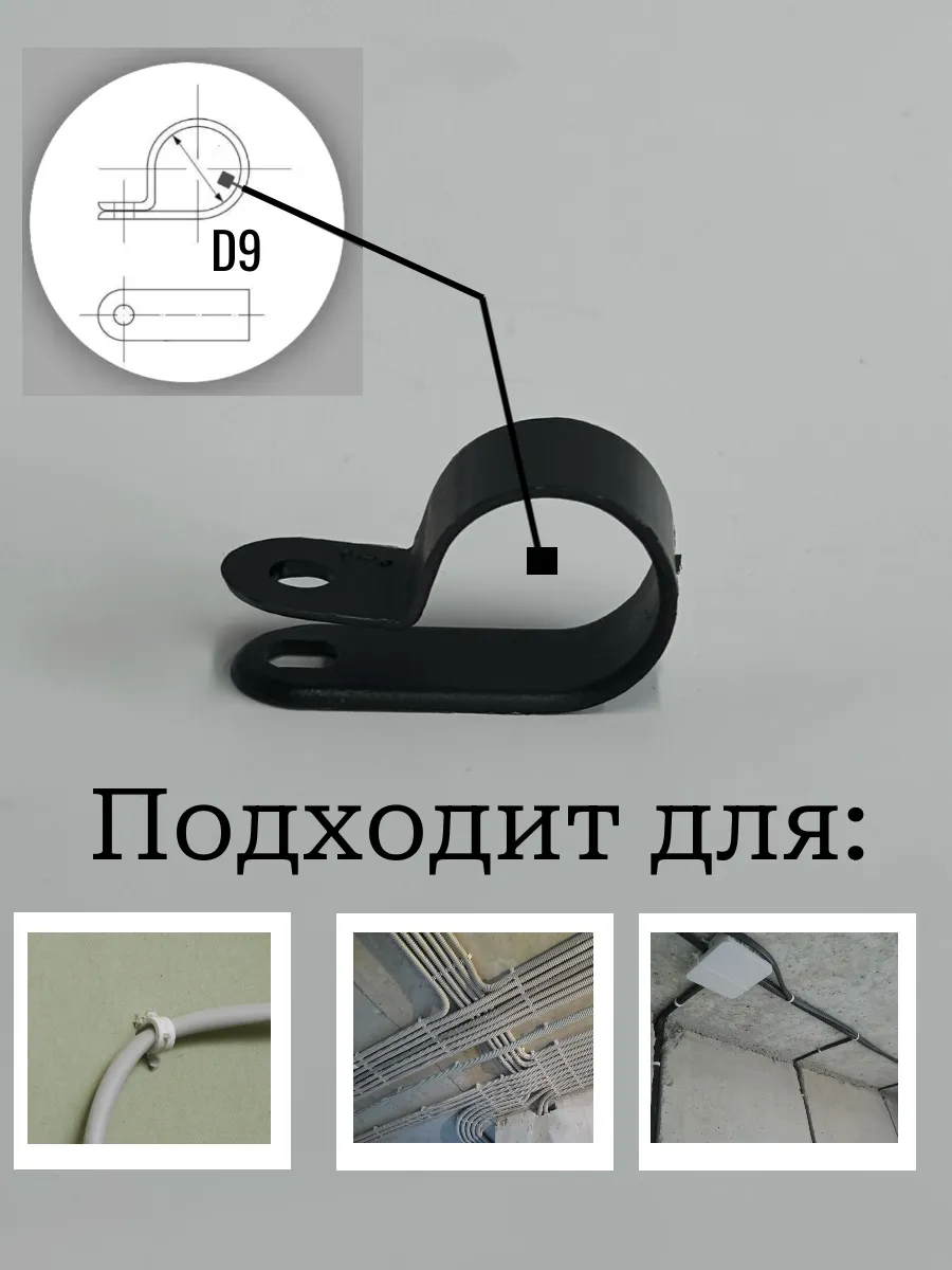 | Крепеж серьга для кабеля (скоба) d 9 черная, 50 шт. | 15-0550ф50 | 1 шт. |