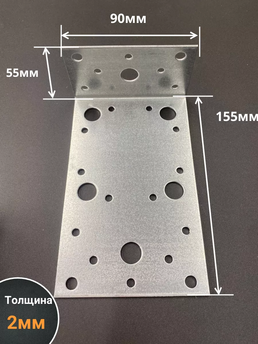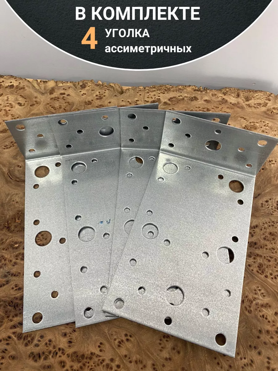 Крепежный ассиметричный уголок 155х55х90 ОЦ, 4 шт.