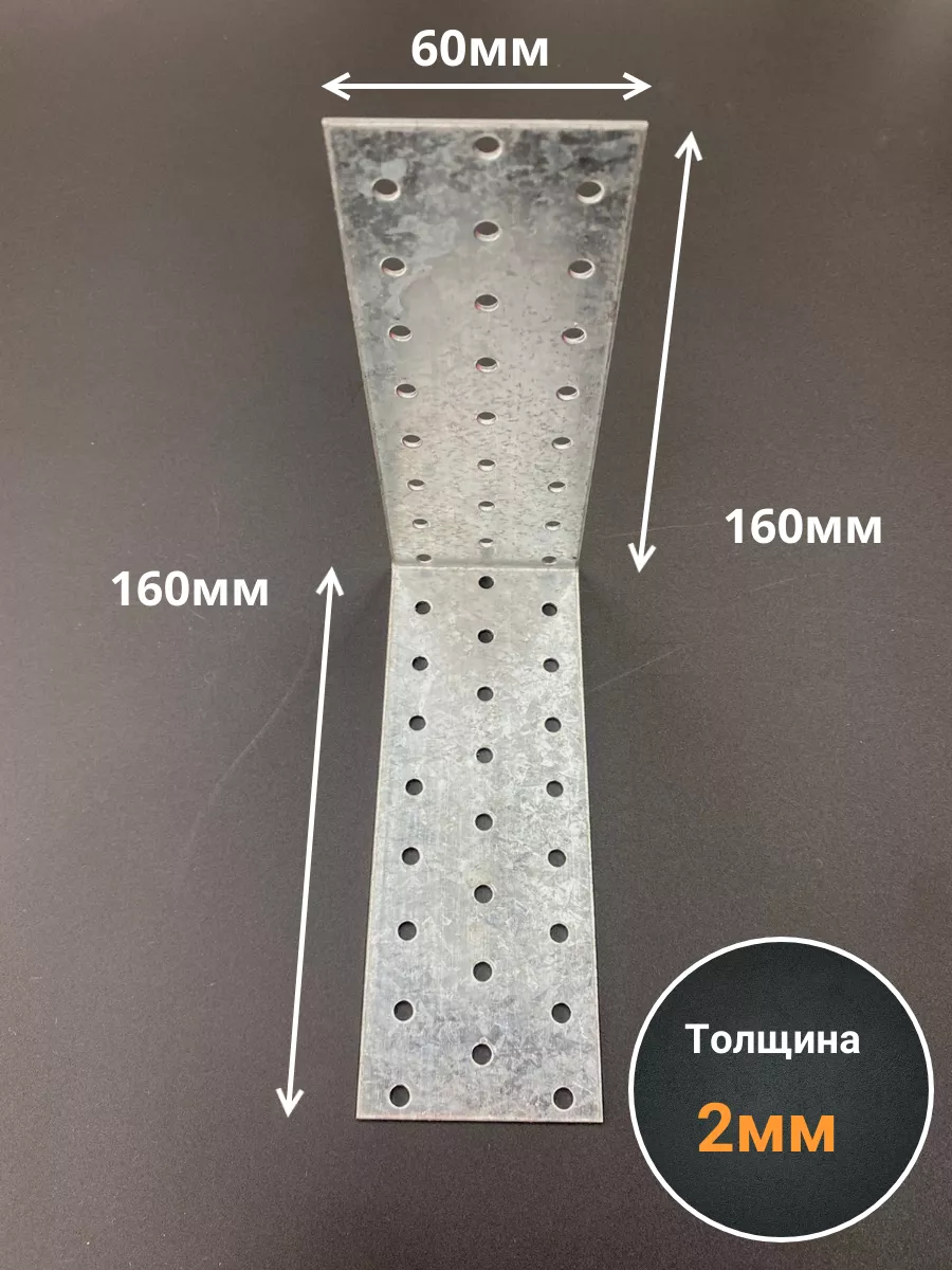 Крепежный равносторонний уголок 160х160х60 ОЦ, 4 шт.