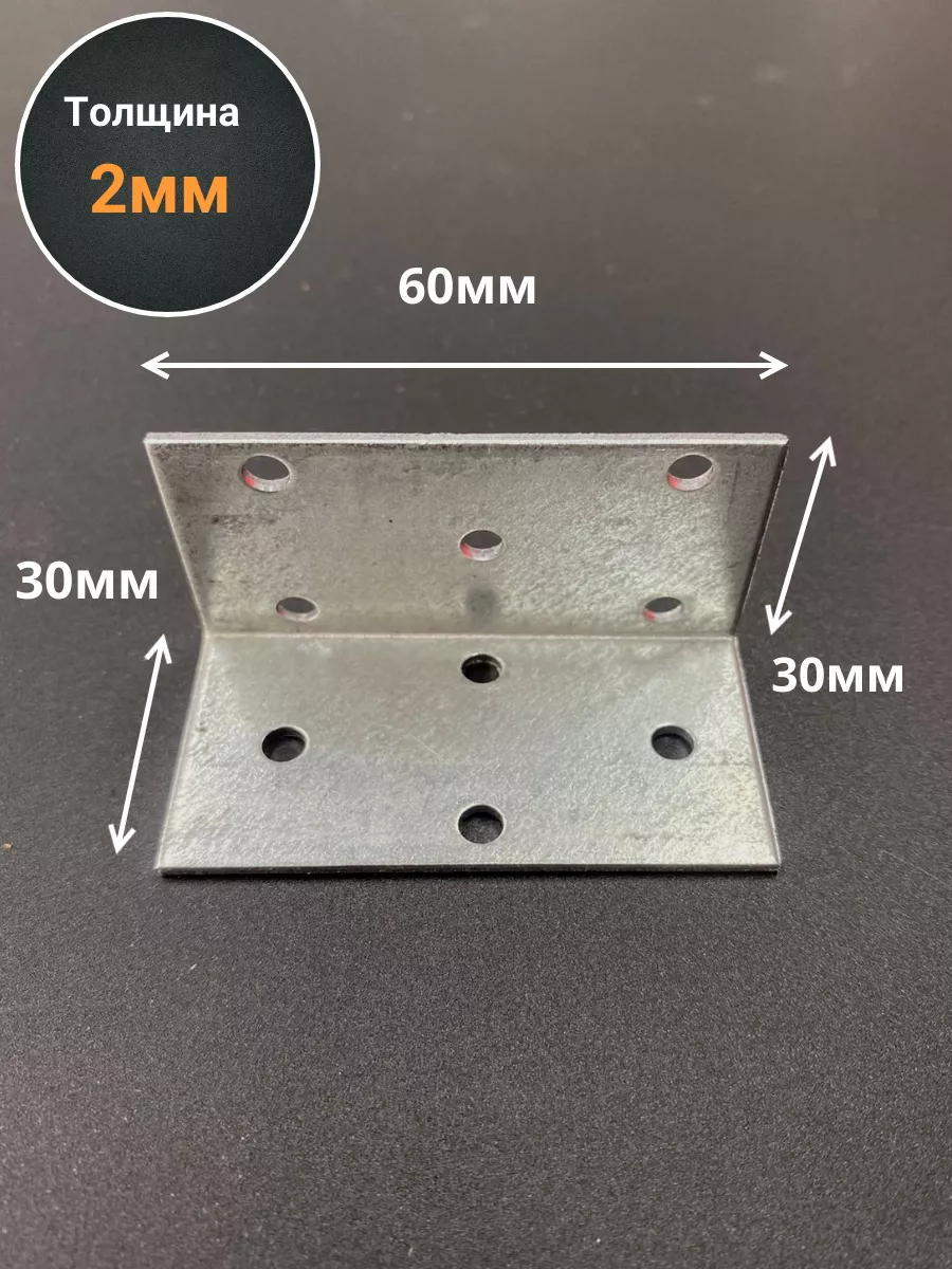 Крепежный равносторонний уголок 30х30х60 ОЦ, 10 шт.