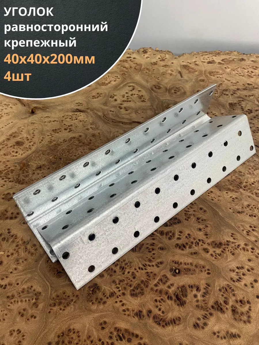 Крепежный равносторонний уголок 40х40х200 ОЦ, 4 шт.