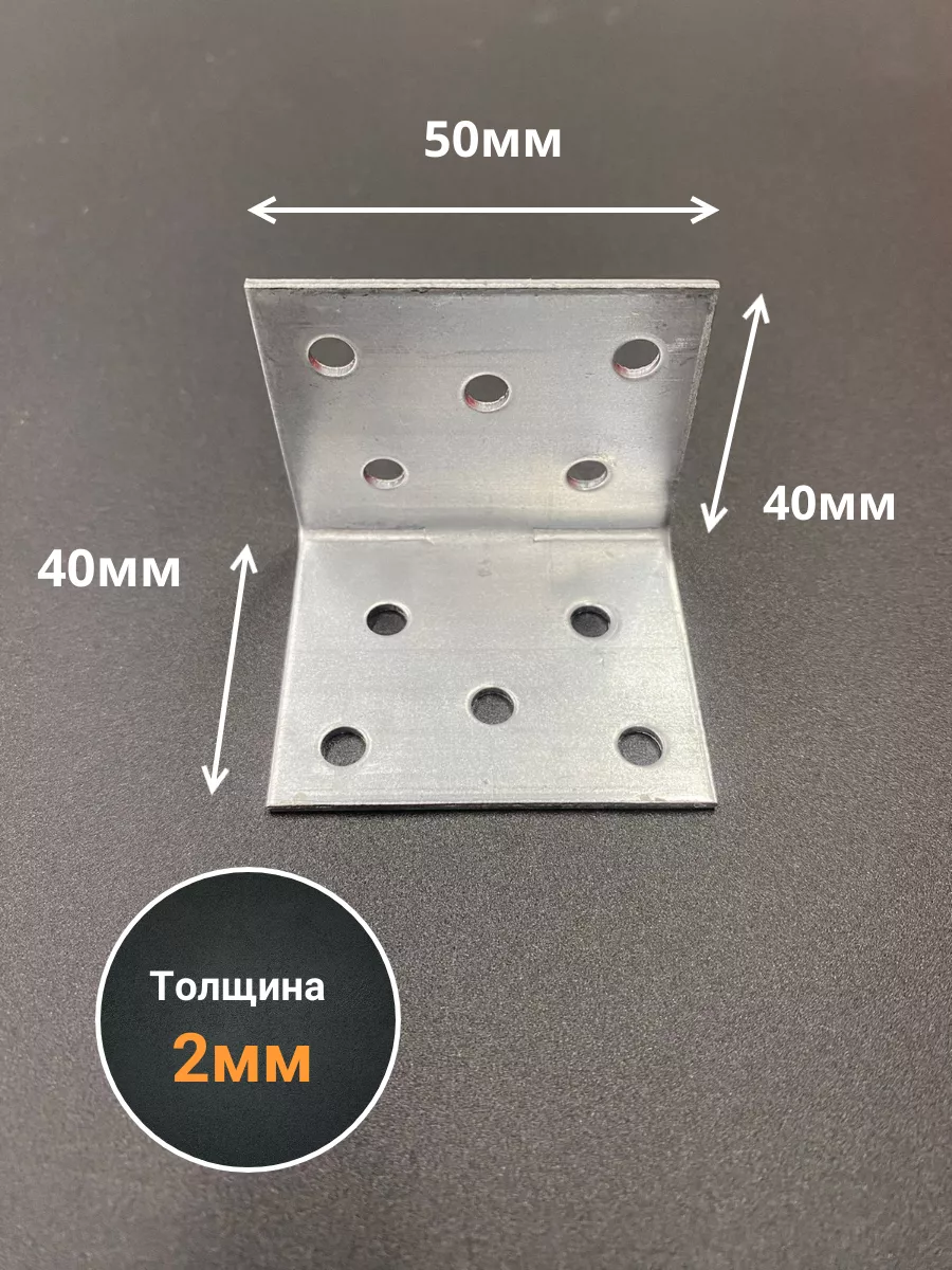 Крепежный равносторонний уголок 40х40х50 ОЦ, 10 шт.