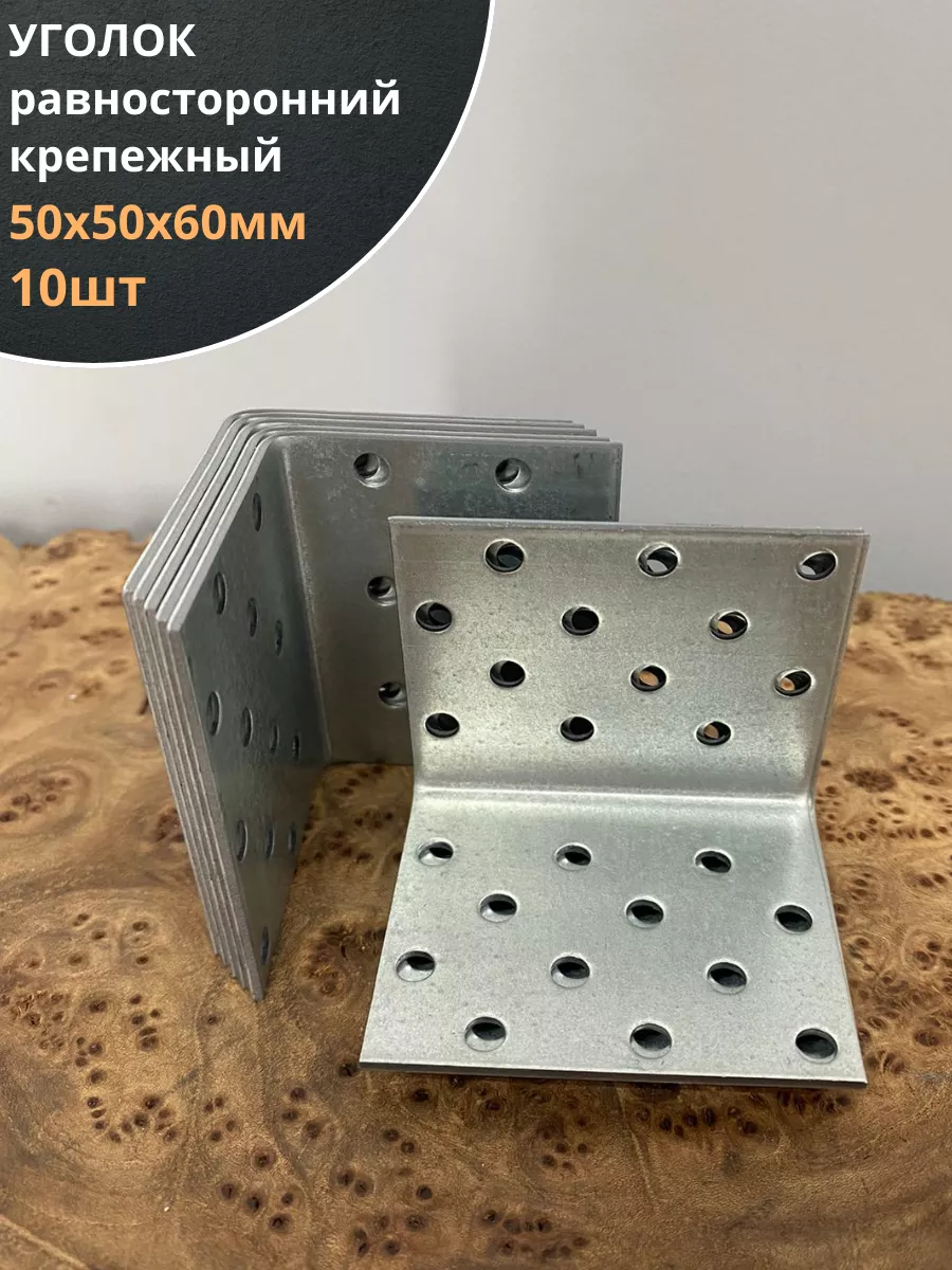 Крепежный равносторонний уголок 50х50х60 ОЦ, 10 шт.