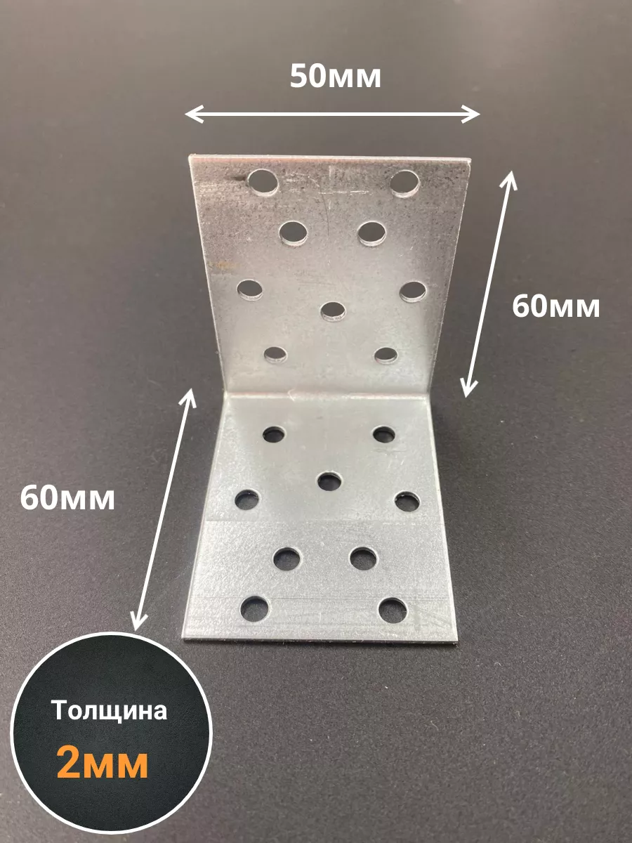 Крепежный равносторонний уголок 60х60х50 ОЦ, 10 шт.