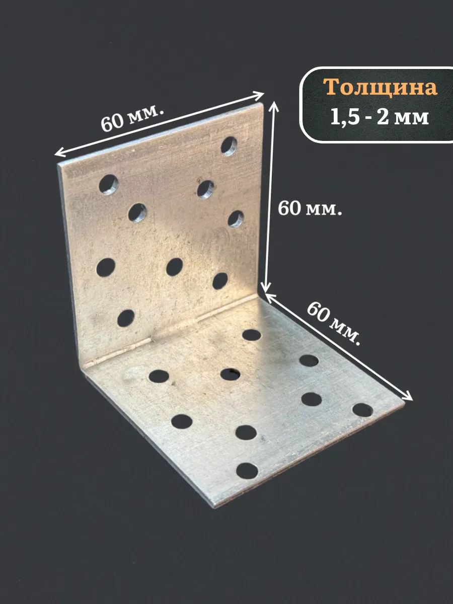 Крепежный равносторонний уголок 60х60х60 ОЦ, 10 шт.
