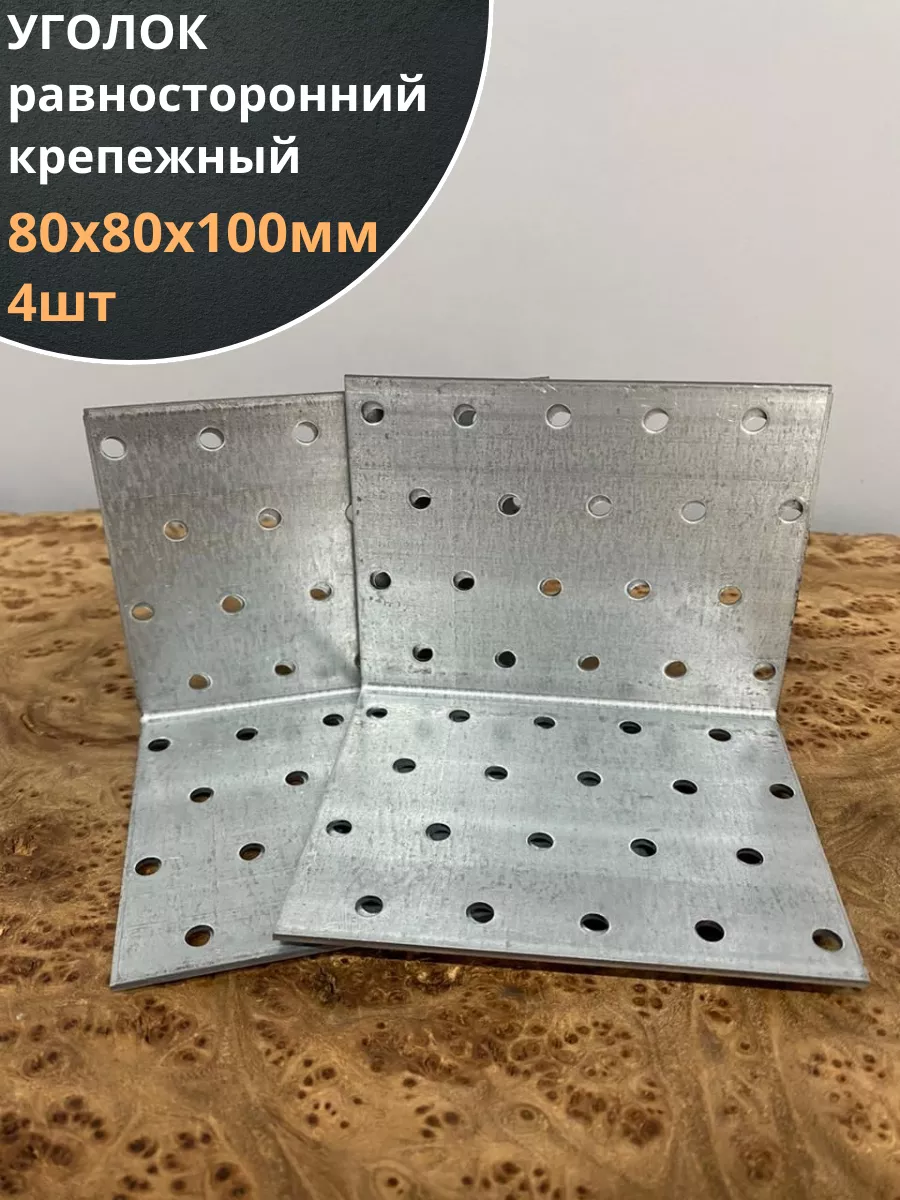 Крепежный равносторонний уголок 80х80х100 ОЦ, 4 шт.