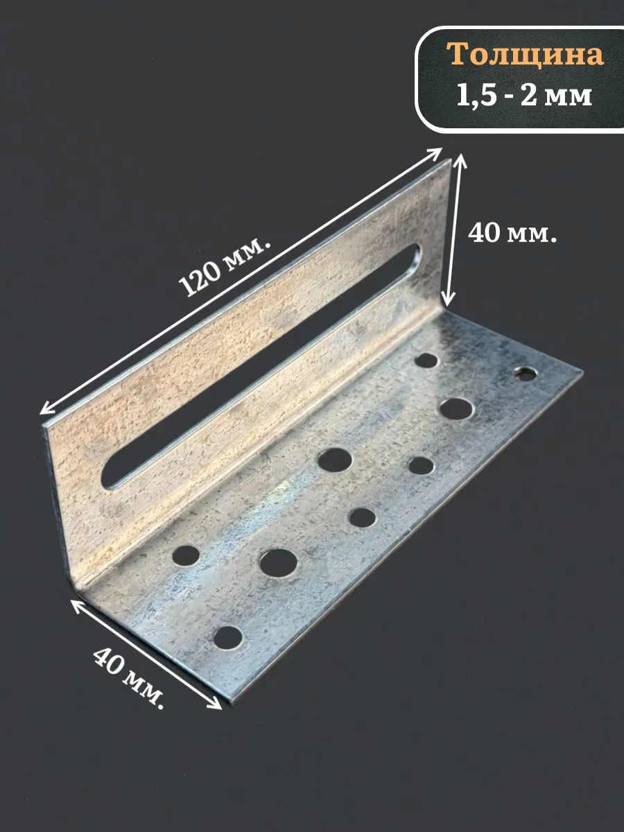 Крепежный скользящий уголок 40х40х120 ОЦ, 10 шт.