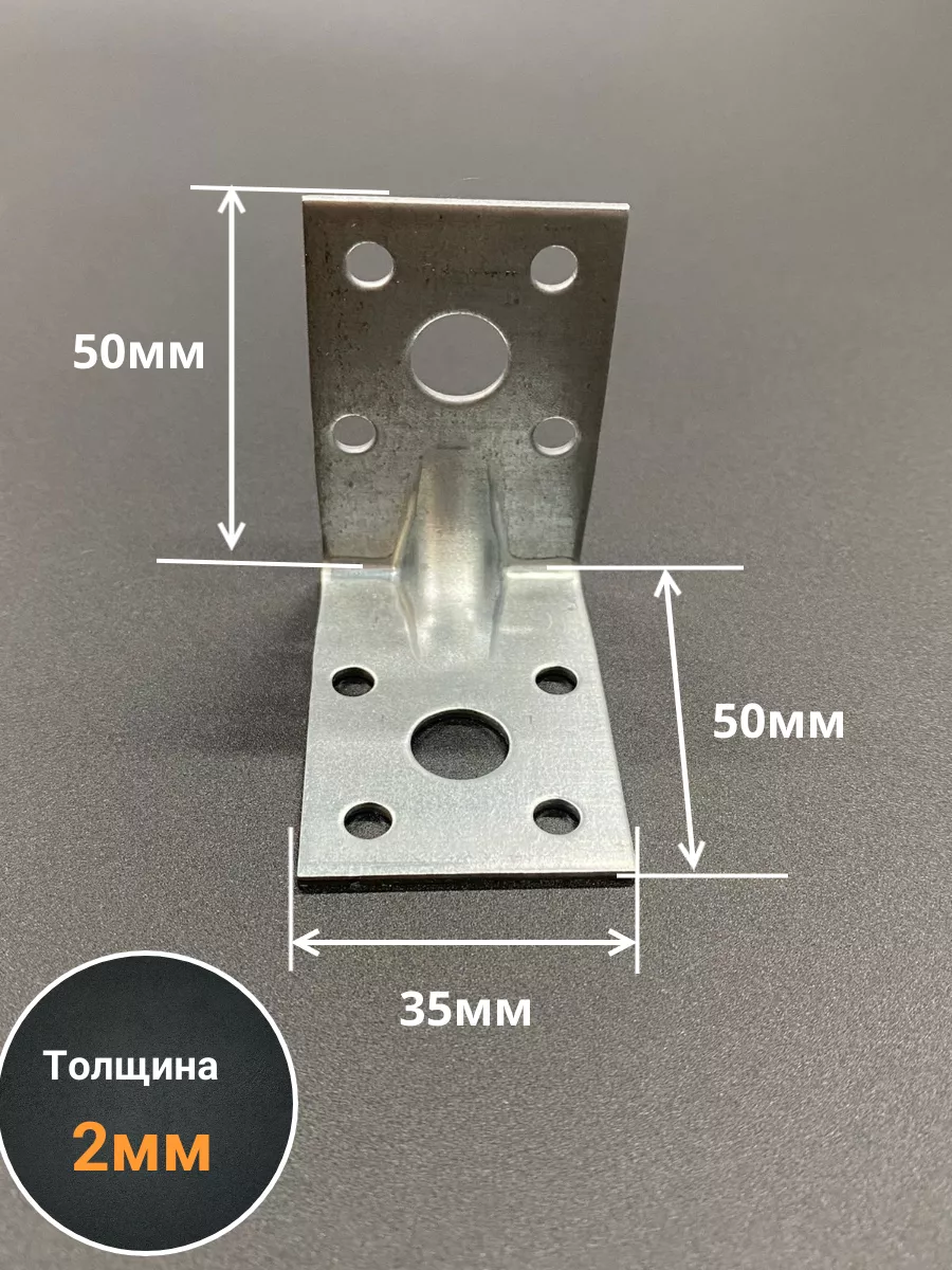 Крепежный уголок усиленный 50х50х35 ОЦ, 10 шт.
