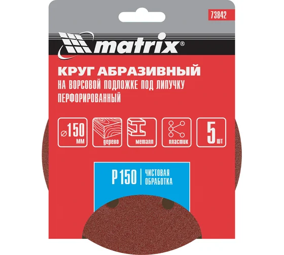Круг абразивный перфорир. на ворсовой основе под "липучку" 150 мм Р150 5 шт Matrix