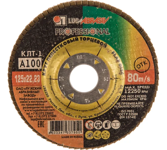 | Круг лепестковый плоский 125х22 мм A 100 КЛТ1 Луга | D91012522140160 | 1 шт. |