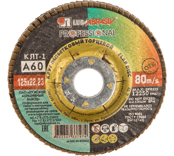 Круг лепестковый торцевой плоский КЛТ1 (150х22 мм; А 60; 14А 25/Р60) Луга D91015022140250 предназначен для ручных шлифовальных машин. Применяется для плоского шлифования, обработки кромок и сварных швов деталей и конструкций из различных марок сталей, цветных металлов и древесины. Круг работает тихо, устойчиво, без прижогов, оставляя холодными обработанные поверхности, обеспечивает максимальный съем материала.