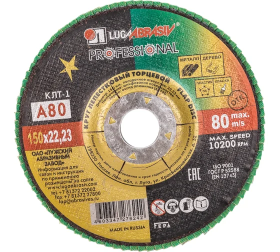 | Круг лепестковый плоский 150х22 мм A 80 КЛТ1 Луга | D91015022140200 | 1 шт. |