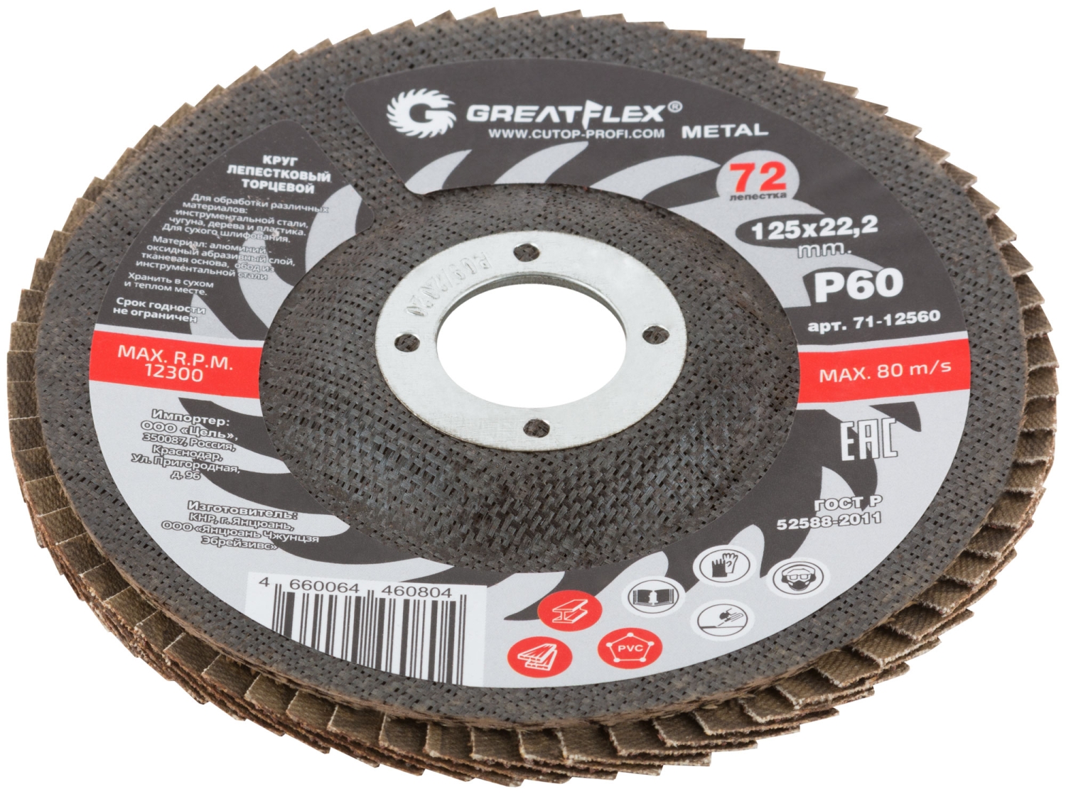 Круг лепестковый торцевой GREATFLEX (72 лепестка) 125х22,2 мм Р60