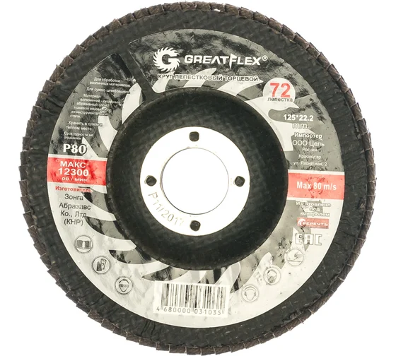 Круг лепестковый торцевой GREATFLEX (72 лепестка) 125х22,2 мм Р80