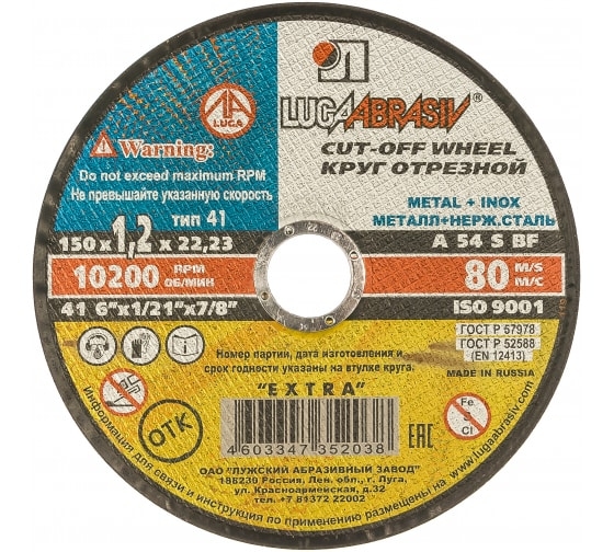 | Круг отрезной мет+нерж 150х1,2х22 мм A 54 S BF 80 Луга | D11001502212000 | 1 шт. |