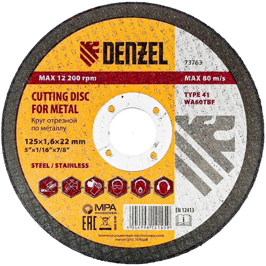 Круг отрезной по металлу 125х1,6х22,2 мм WA60TBF Denzel