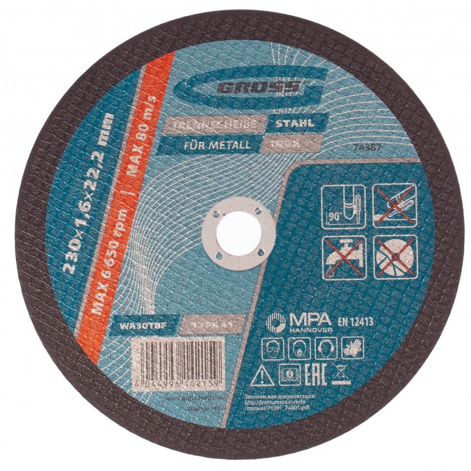 Круг отрезной по металлу 180х1,6х22,2 мм WA46TBF Gross 74382 1 шт.