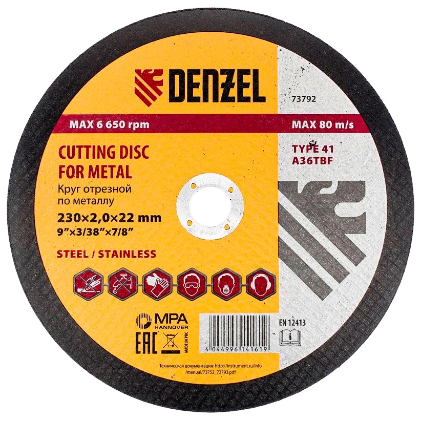 Круг отрезной по металлу 230х2,0х22,2 мм A36TBF Denzel