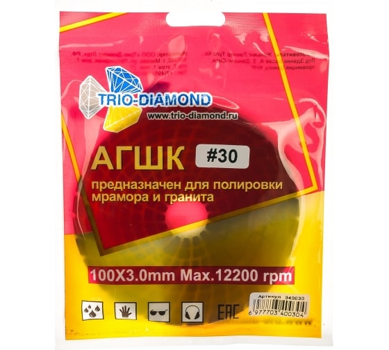 Круг алмазный гибкий шлифовальный Черепашка 100 № 30 Trio-Diamond 340030 предназначен для ручных шлифовальных машин. Применяется для обработки бетонных конструкций, камня, изделий из мрамора и гранита. Круг изготовлен на гибкой основе, имеет алмазное напыление и крепится при помощи липучки.