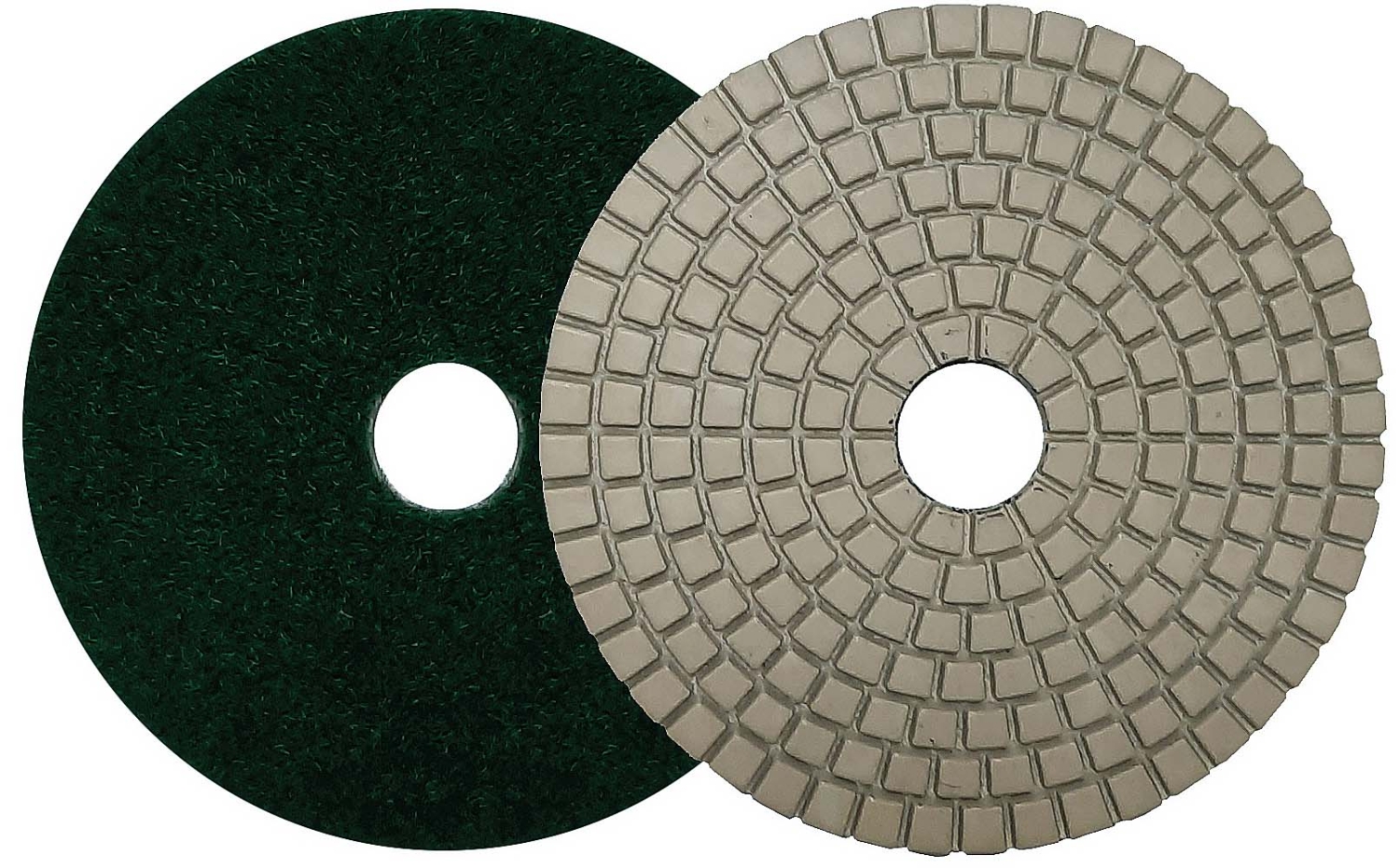 АГШК предназначен для УШМ с регулировкой оборотов в диапазоне от 2500 до 4500 об/мин. Применяется для шлифования и полировки мрамора, гранита, керамогранита и других изделий из натурального и искусственного камня с использованием воды. Круг имеет алмазное напыление и изготовлен на гибкой основе. Крепится при помощи липучки на специальную насадку (опорную тарелку). Материал: полимерная связка, алмазная фракция, ворсовая основа. Упаковка: подвесной пакет.