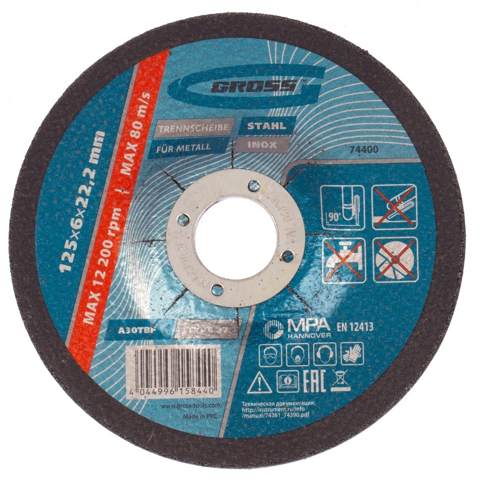 Круг шлифовальный по металлу 125х6,0х22,2 мм WA24TBF Gross