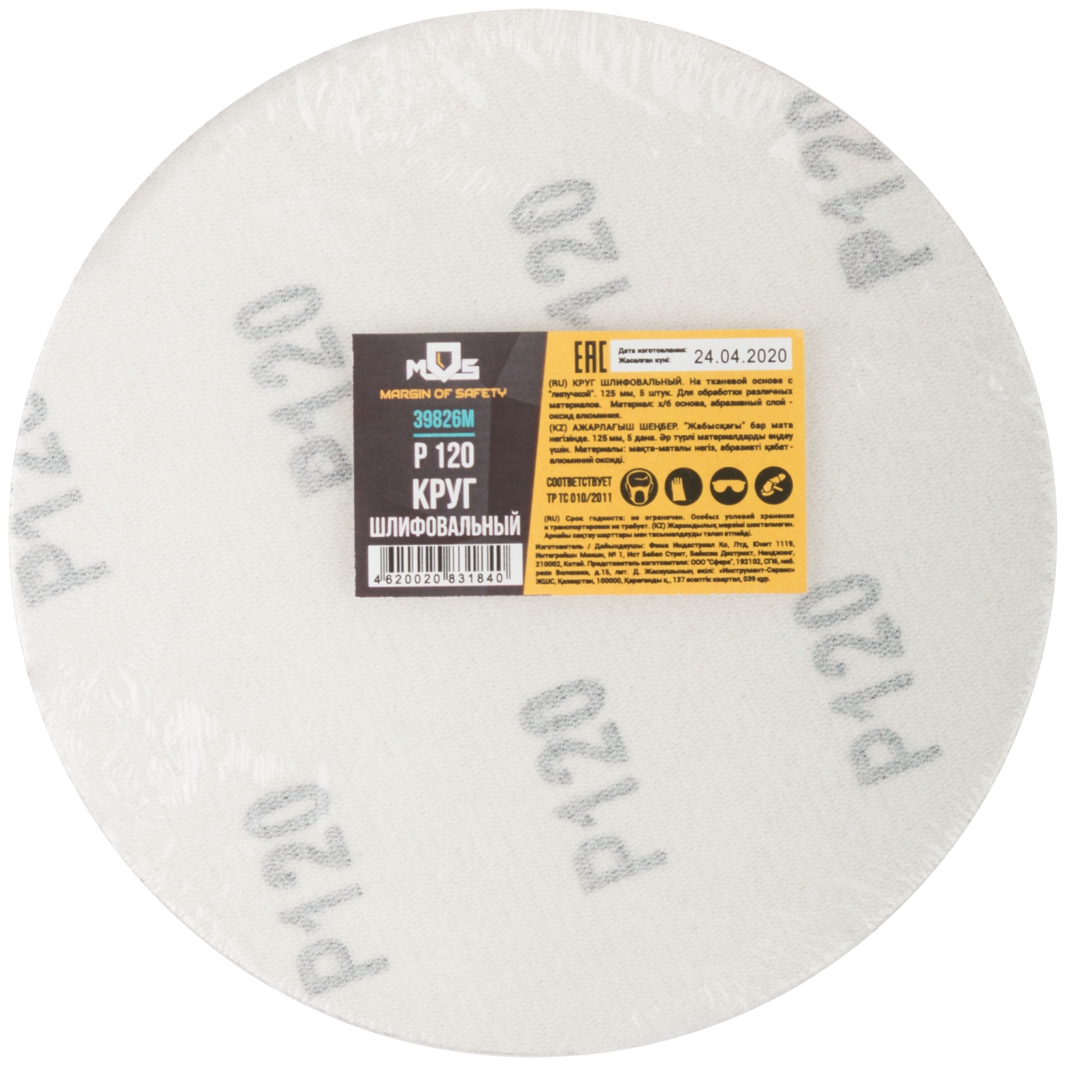 Круги шлифовальные сплошные (липучка), алюминий-оксидные 5 шт Р 120