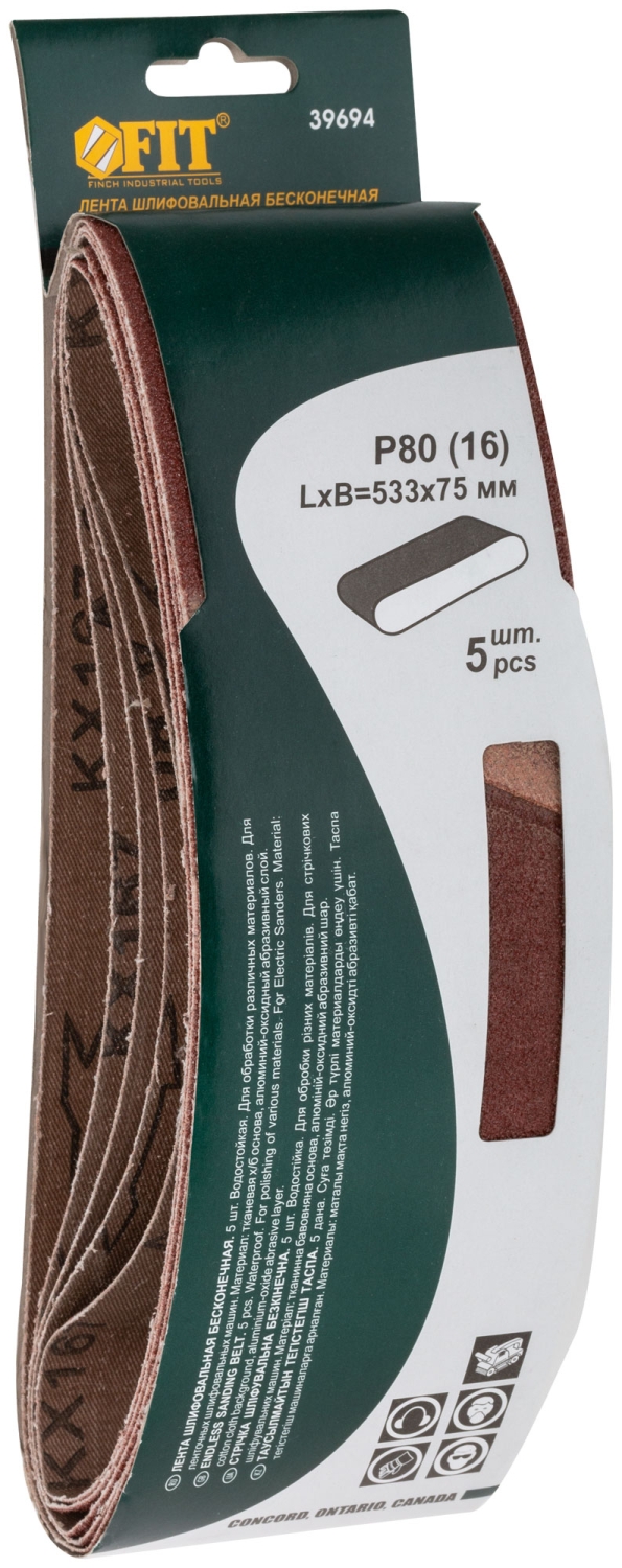 Ленты шлифовальные бесконечные, водостойкие, тканевая основа, 75 х 533 мм, 5 шт. Р 80