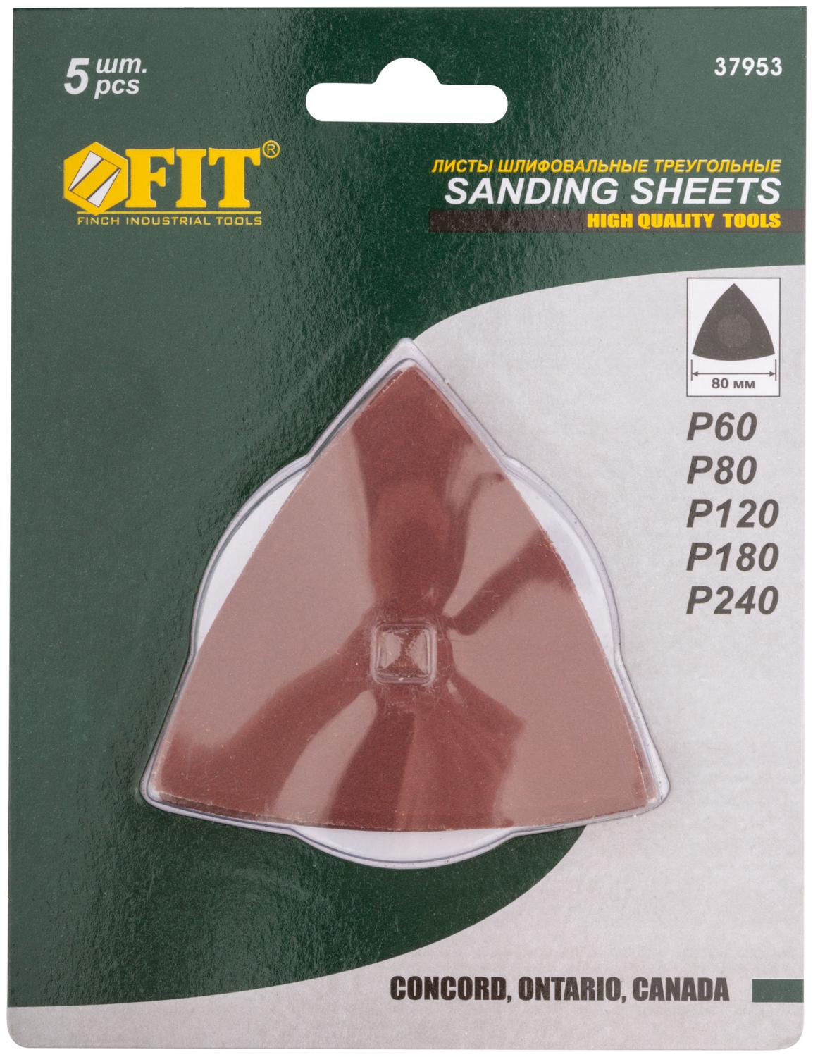 Листы шлифовальные, тканевая основа, треуг., 80 мм, 5 шт.