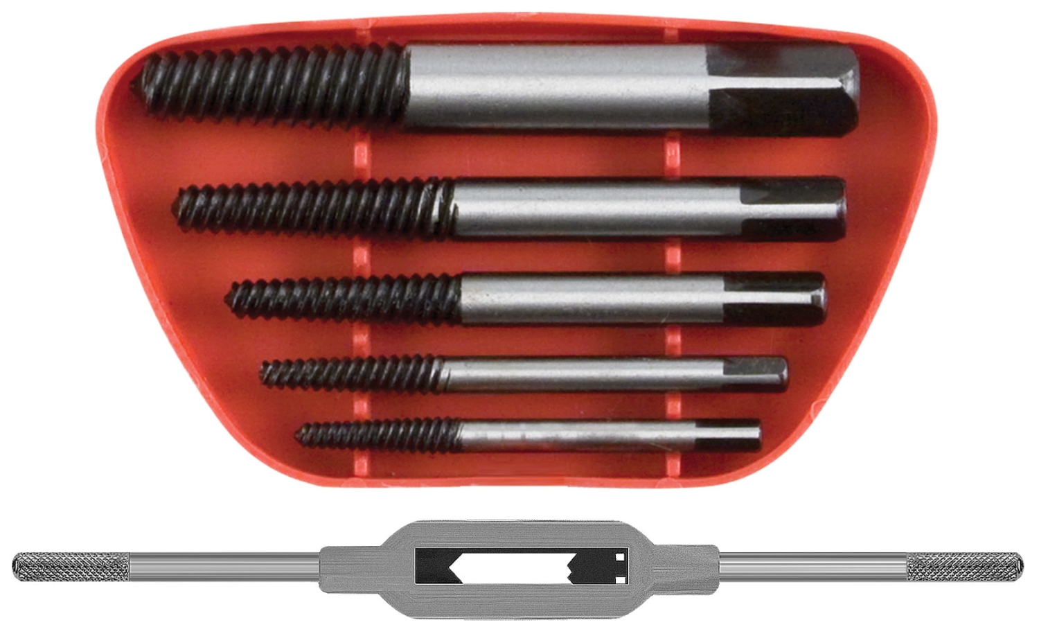 Для выкручивания шурупов и болтов с поврежденным шлицем. Материал: экстракторы из легированной инструментальной стали 40 Cr, корпус воротка из цинкового сплава, ручки и зажим воротка из инструментальной стали. Упаковка: блистер.