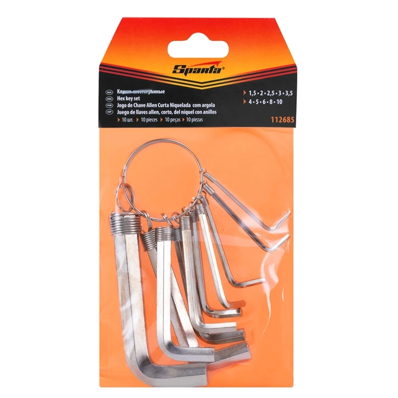 Набор ключей имбусовых HEX 1,5-10 мм 10 шт. на кольце, никелированные, Sparta