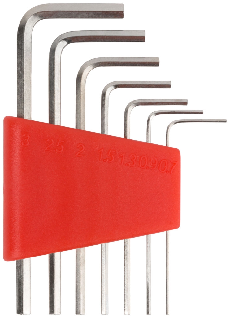 Набор в складном пластиковом держателе 7 шт. Размеры: H0.7, H0.9, H1.3, H1.5, H2, H2.5, H3. Материал: термообработанная хром-ванадиевая сталь. Упаковка: блистер.