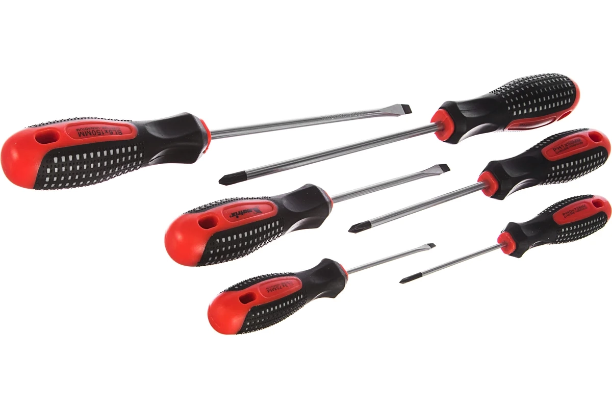 Набор отверток профессиональных Fusion CrV, трехкомп. рукоятка antislip 6 шт. Matrix