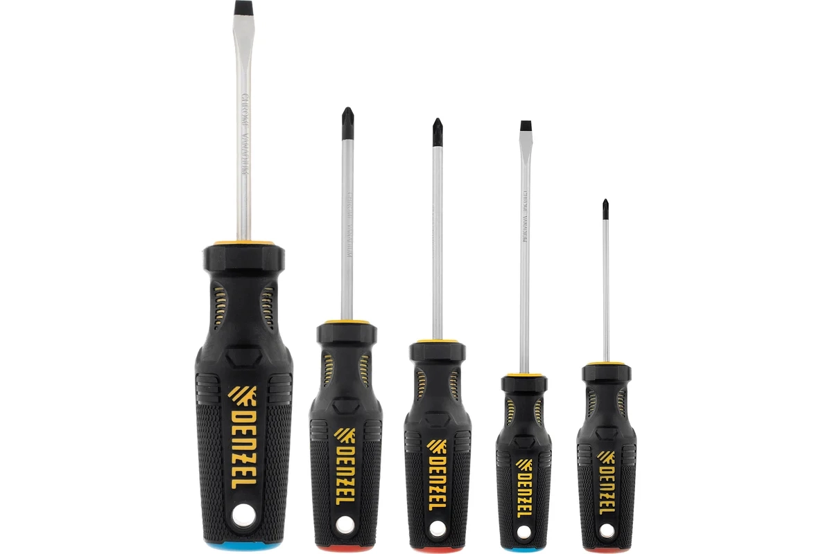 Набор отверток с трехкомпонентными рукоятками CrV 5 предм. Denzel
