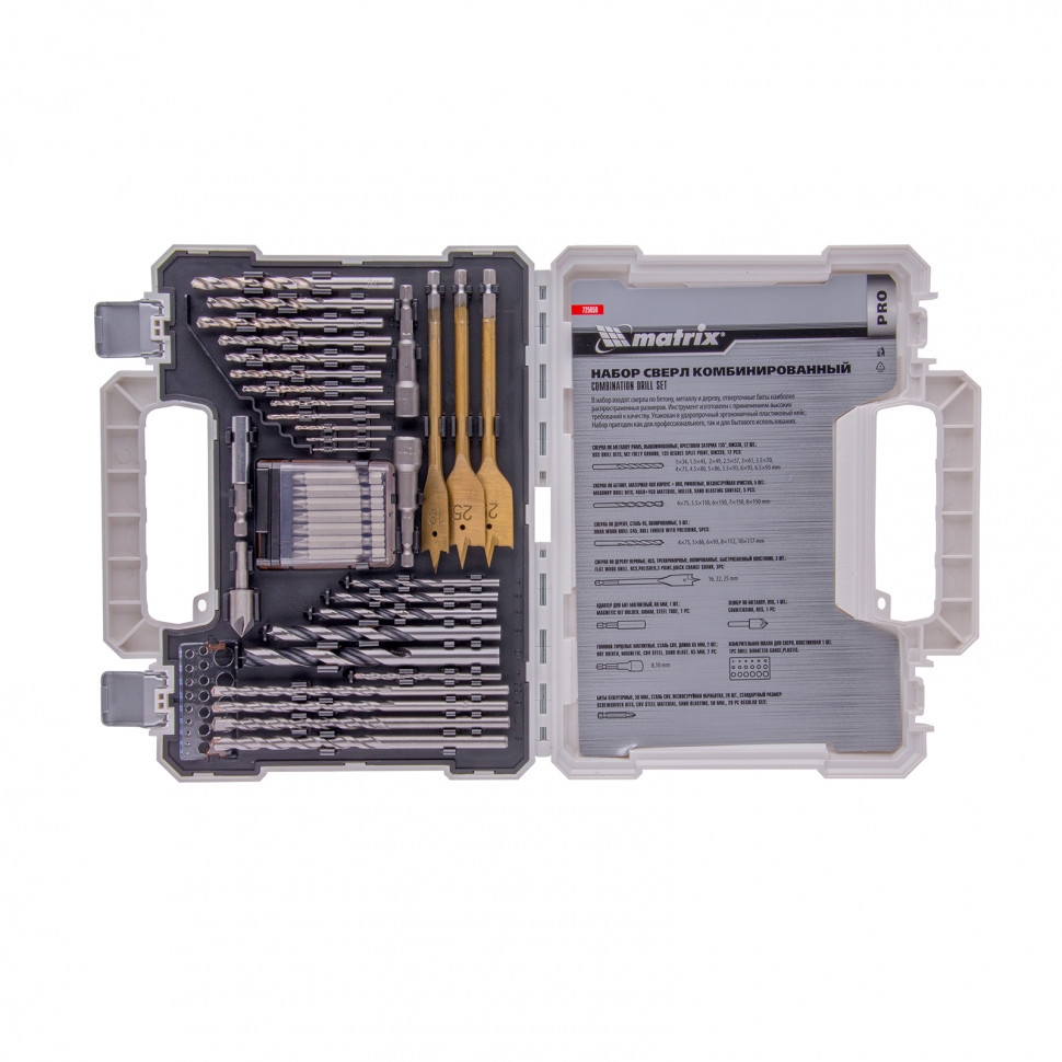 Набор сверл комбинир.. мет.1-6,5мм.бет.4-8мм.дер4-8мм.перк.биты 20шт..адап.гол.2шт.зенк.50пр.Matrix