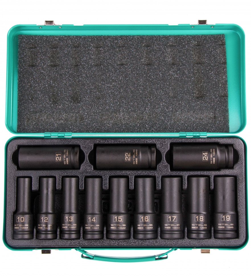 Набор ударных глубоких торцевых головок шестигр.12 шт в кейсе 1/2 10-24мм Stels