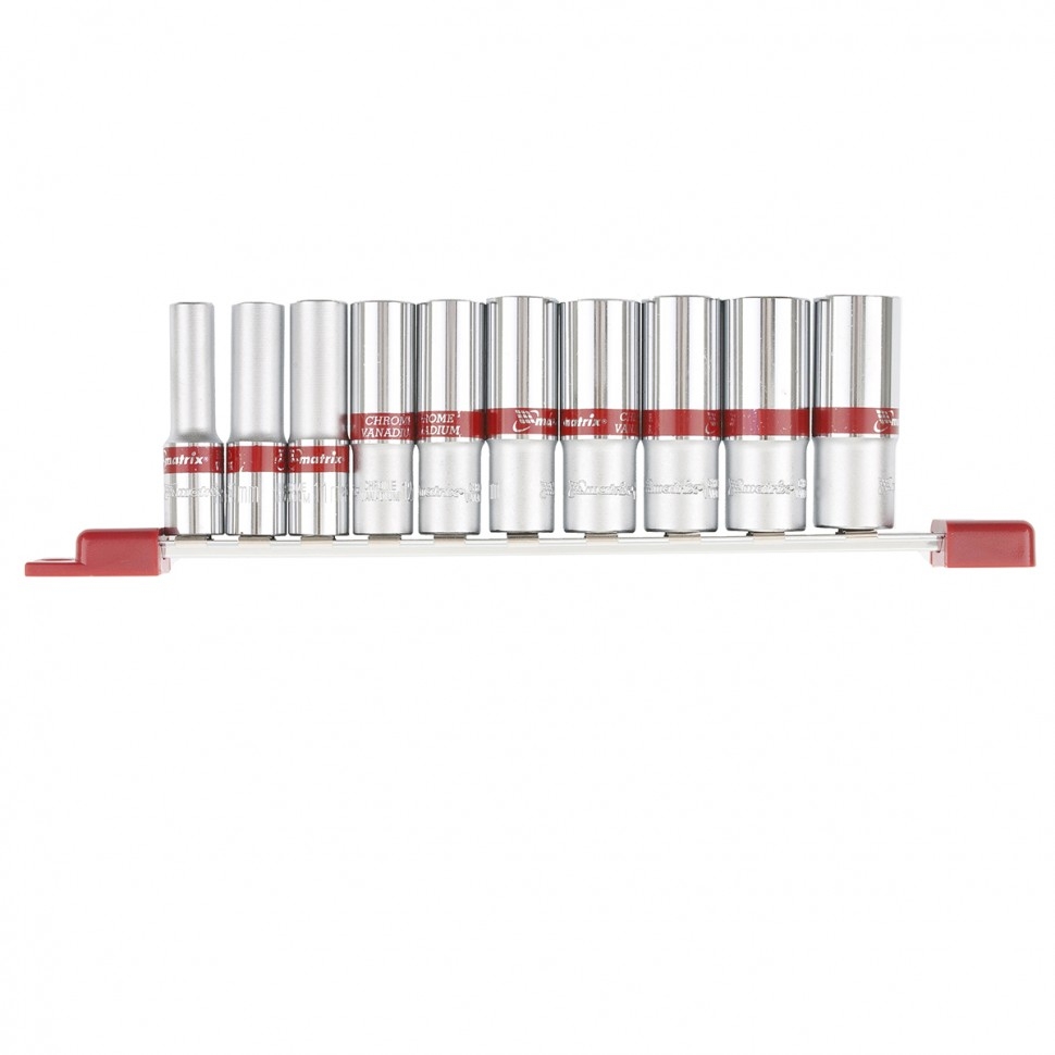 Набор удлиненных торцевых головок 1/4 дюйма Matrix 13592 включает в себя 10 шестигранных насадок 4-13 мм для работы с резьбовыми соединениями. Торцевые головки с увеличенной длиной применяются для закручивания и откручивания крепежей в труднодоступных местах, а также для извлечения свечей зажигания. Набор востребован у автослесарей, сантехников, а также будет полезен в бытовой сфере.