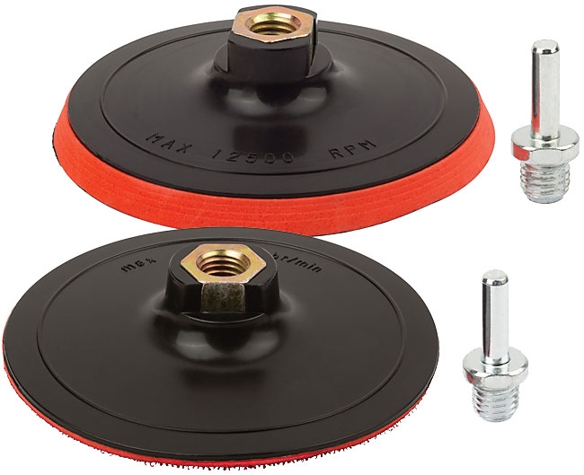 Насадка c липучкой предназначена для УШМ и дрелей. Применяется для проведения шлифовальных работ совместно с абразивными кругами на ворсовой основе. Преимущество насадки в наличии мягкой полиуретановой прокладки, которая позволяет качественно обрабатывать сложные неровные поверхности. В комплекте поставляется переходник с резьбы М14 на цилиндрический хвостовик.
